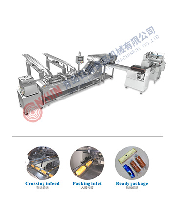 該機是我公司QNF360機型的換代產品。該無托盒包裝機使用伺服電機控制,使該機自動化程度進一步提升、性能更加穩(wěn)定可靠、操作更加簡便。最顯著的特點是:包裝產品尺寸變換非常簡單。 用 途: 適用于多枚餅干的無托盤集合大包裝,方、圓、橢圓等各種形狀餅干皆可。 主要技術參數(shù): 包裝能力:30-100包/分(據包裝膜材質,厚度及包裝規(guī)格確定) 包裝規(guī)格:長100-240mm,寬40-80mm,高40-70mm 總機尺寸:主機部分4020mm*1150mm*1840mm 供料部分3100*580mm*1130mm 裝機總容量:5.2KW, 單相 220V, 50Hz 總重量:1200kg 包裝材料:紙/PE,OPP/PE,OPP/AL/PE等適合于加熱封口的包裝材料 機械特性 l 機械結構的整體設計簡單、合理,操作簡便,調節(jié)方便 l 使用夾運輸送機構,完全可靠的解決了包裝不同長度物品尺寸變換的繁瑣及倒餅的弊病。 l 縱封裝置采用三對牽引輪構成,保證封口高速封合、穩(wěn)定、美觀。 l 精巧的自動供料裝置可將包裝物準確無誤投放于主機進入包裝封口。 l 包裝尺寸調節(jié)方便快捷。 電氣特性 l 送膜、供料采用數(shù)字伺服電機控制系統(tǒng) l 供料部分采用運動控制單元,供料同步、準確、自動記憶 l 變頻調速,方便、準確、可靠 l 色表追蹤點自動定位、自動跟標 l 包裝袋自動測量、記憶 l 供料位置即使在運動中也可隨意調整